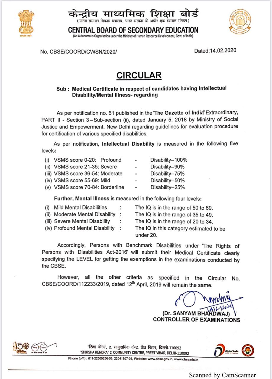 Medical Certificate in respect of candidate having Intellectual Disability/Mental Illness-regarding.