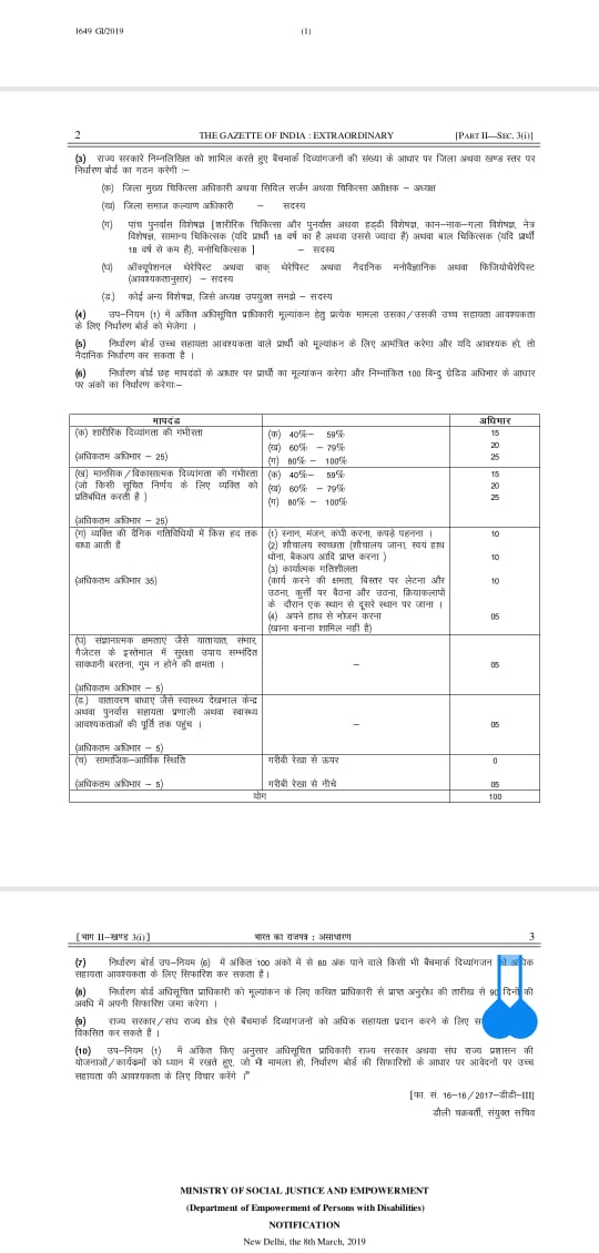 राज्य सरकारें निम्नलिखित को शामिल करते हुए बैचमार्क दिव्यांगजनों की संख्या के आधार पर जिला अथवा प्रखण्ड स्तर पर निर्धारण बोर्ड । (शारीरिक दिव्यांगता )