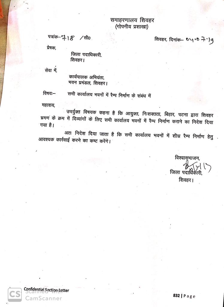शिवहर जिला में सभी कार्यालय भवनों में रैम्प निर्माण के संबंध में।