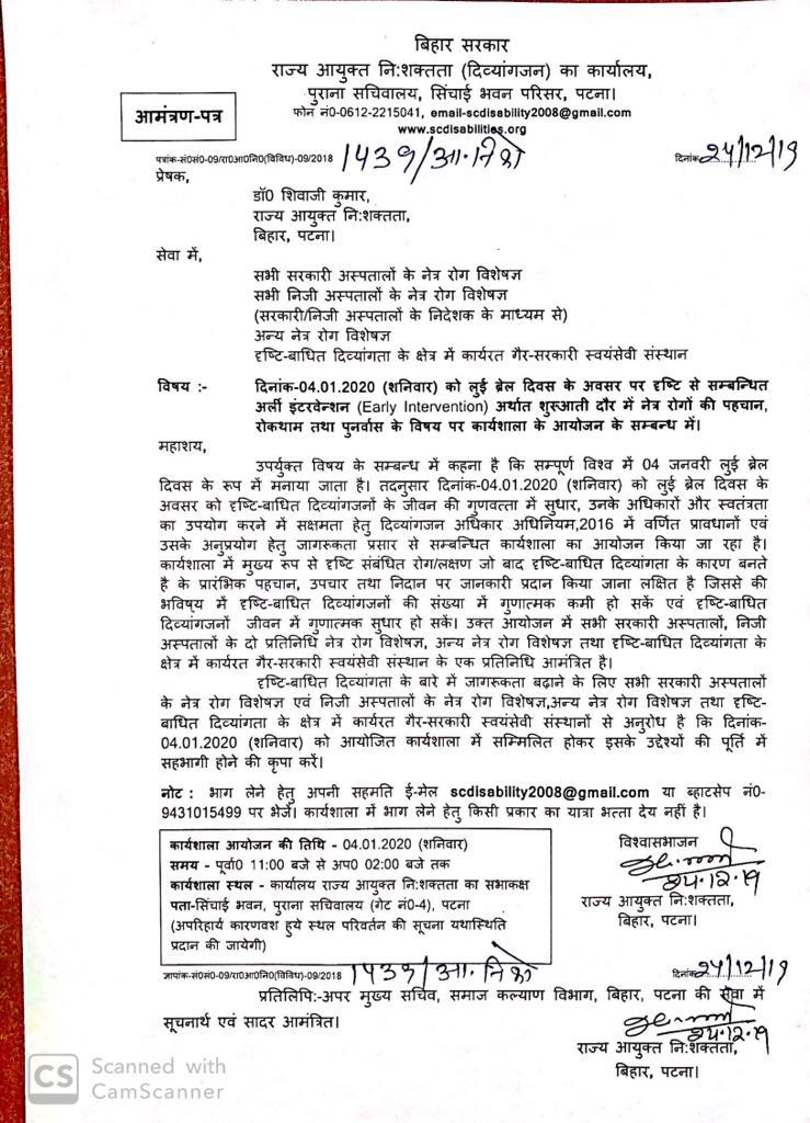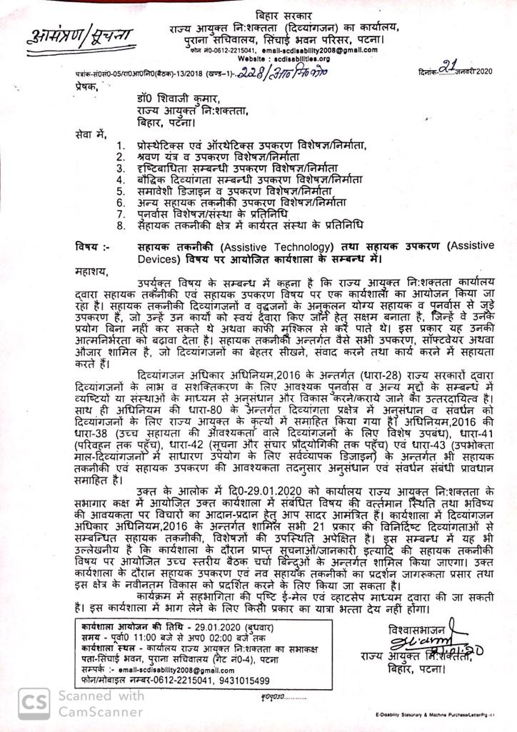 Invitation for the meeting on Assistive Technology (AT) on 29th January 2020 in Patna.