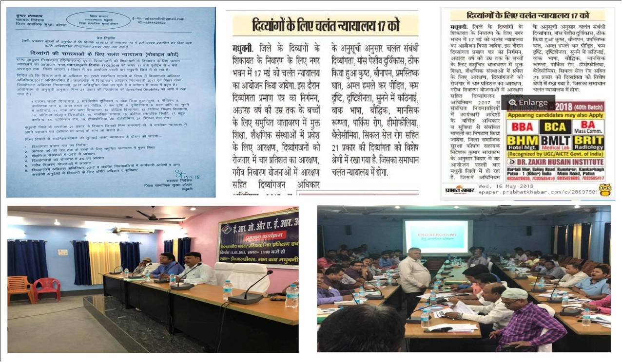 in Darbhanga with official visit and meeting with Darbhanga, DM, SP, SDMs, BDOs, COs, ADSS and all the administration staff of Darbhanga Collecteriate regarding implementation of RPWD Act 2016